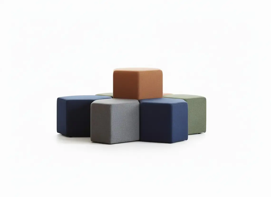 Beyond fixed options, Hexi truly excels as a modular system. Individual ottoman units can be combined to create custom configurations tailored to the needs of each space. Whether arranged in linear runs, clustered layouts, or dynamic, informal groupings, Hexi allows users to build their own seating landscape with ease.